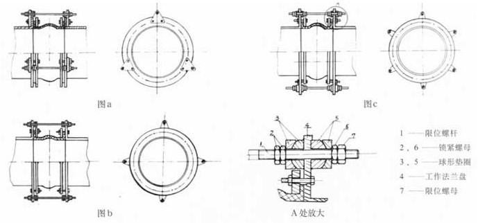 5、 當橡膠接頭在水(油)泵出口近距離或開停頻繁條件下使用時,為減少橡膠接頭長度的拉伸和壓縮過大而給泵和管道帶來的影響,應在法蘭兩端增加限位裝置!